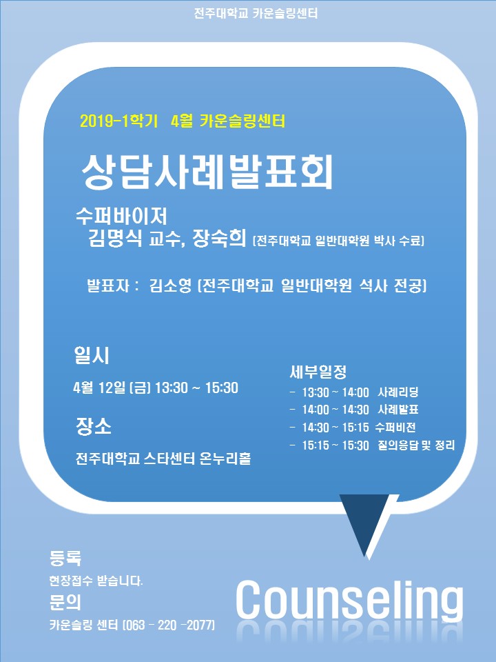 [2019-1학기] 4월 5일 상담사례발표회 안내